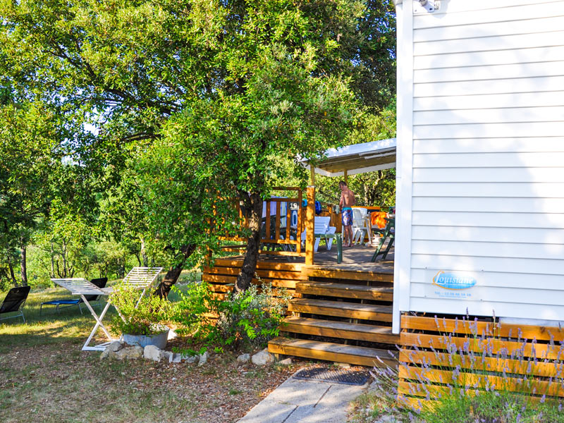 These spacious (36 m²) and fully equipped Prestige mobile homes offer absolute comfort and a warm atmosphere. They feature 2 bedrooms, air conditioning, a complete kitchen with a traditional oven, dishwasher and fridge-freezer, a television, a dressing room and ample storage, as well as a 20 m² covered terrace.